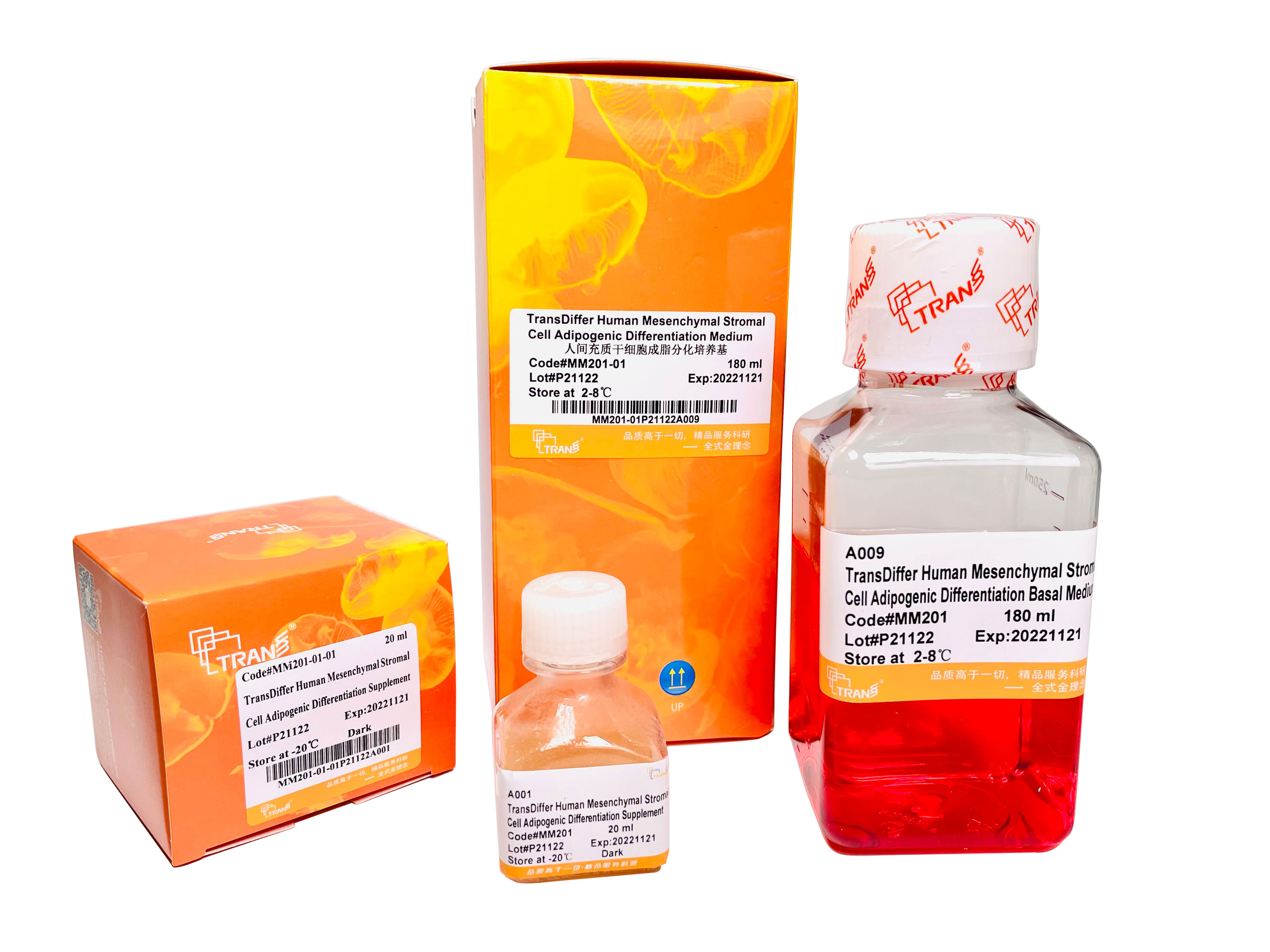 TransDiffer? Human Mesenchymal Stromal Cell Adipogenic Differentiation Medium是一種含血清的完全培養(yǎng)基,適用于將人間充質(zhì)干細(xì)胞(Human Mesenchymal Stromal Cells, MSCs)分化為脂肪細(xì)胞。本產(chǎn)品普適性強(qiáng),適用于多種培養(yǎng)體系(含血清及無(wú)血清)培養(yǎng)的不同來(lái)源(人多能性干細(xì)胞衍生、骨髓、臍帶、脂肪來(lái)源)的MSCs。本產(chǎn)品穩(wěn)定性好,配制好的完全培養(yǎng)基可于2-8℃穩(wěn)定保存1個(gè)月。